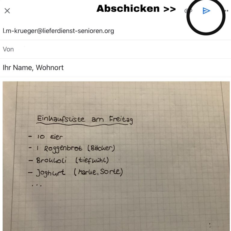 Letztendlich schicken sie mit dem Pfeilsymbol ihren Einkaufszettel direkt in unser Postfach. Sie haben es geschafft !