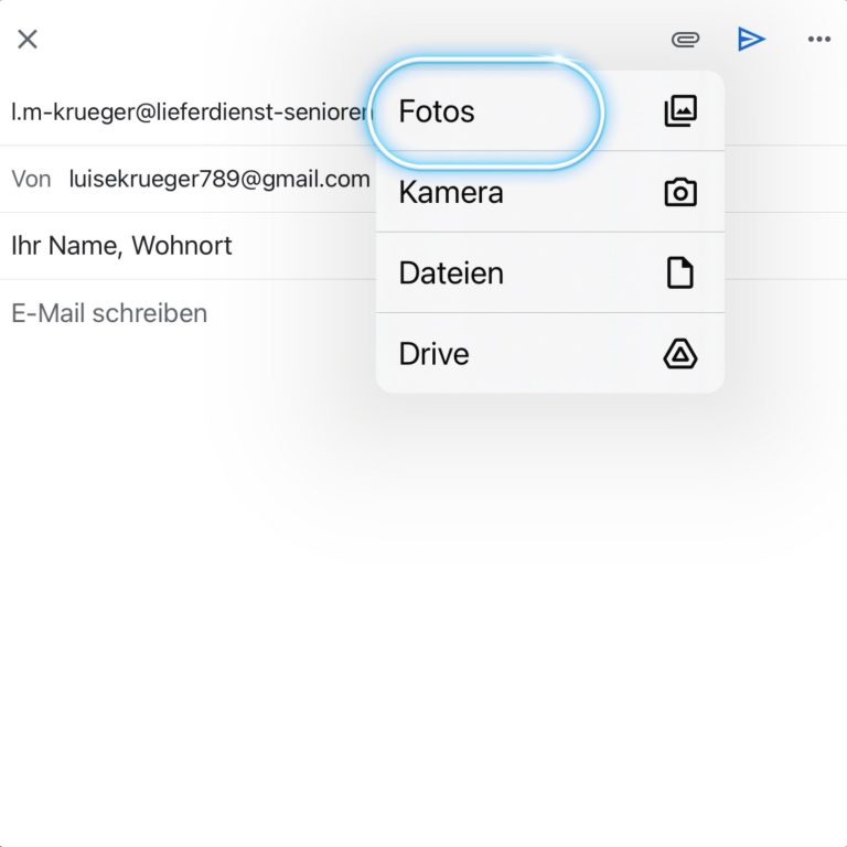Drücken sie auf » Fotos « und wählen sie ein Foto von ihrer Einkaufsliste aus. Beschreiben Sie die Produkte so, dass wir genau wissen ( fals gewollt) welches Produkt gebraucht würd. Klicken sie anschließend auf »Hinzufügen«